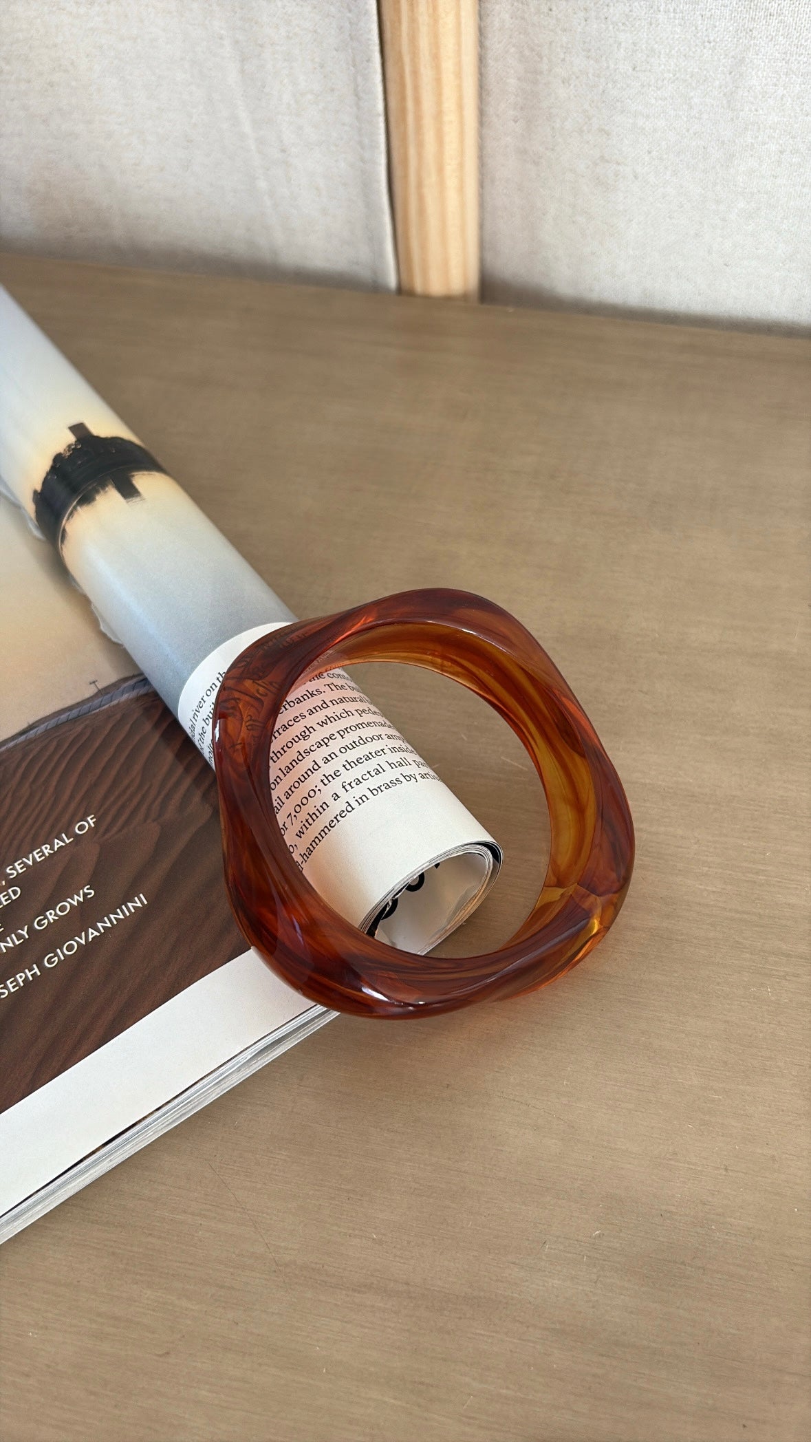 Translucent marble bangle bracelet in a tortoiseshell color.
